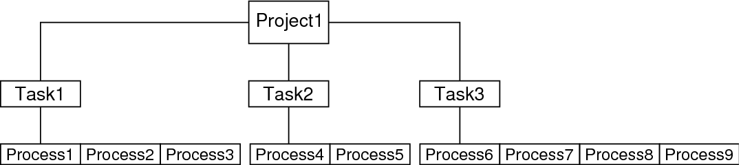 Each process is a member of one task, and each task is associated with one project.