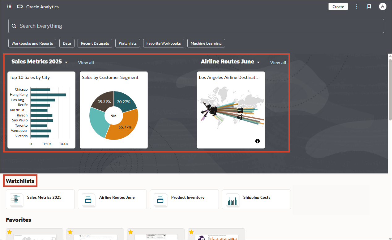 Las listas de comprobaciones proporcionan un acceso rápido a las visualizaciones a las que accede con más frecuencia. Cuando crea listas de comprobaciones, estas se muestran en el área Listas de comprobaciones destacadas de la sección Listas de comprobaciones de la página de inicio.