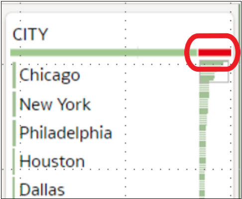 Cuando se filtra por valores, Oracle Analytics actualiza todas las columnas de datos para mostrar instantáneamente solo las filas relacionadas con los valores de filtro que ha seleccionado. Si filtra un valor cercano a la parte inferior de una larga lista, es posible que deba desplazarse hacia abajo en la lista para buscarlo y anular la selección del valor.