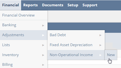 By contrast, with the Custom Transactions feature, you can create custom transaction types that are clearly labeled for specific purposes. With this approach, each custom transaction type has its own list view and its own menu path, which you can customize. In the following example, three custom transaction types have been added to the Accounting Center’s Financial tab.