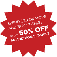 Tagline: Spend $20 or more and buy 1 T-shirt to get 50% off an additional T-shirt!
