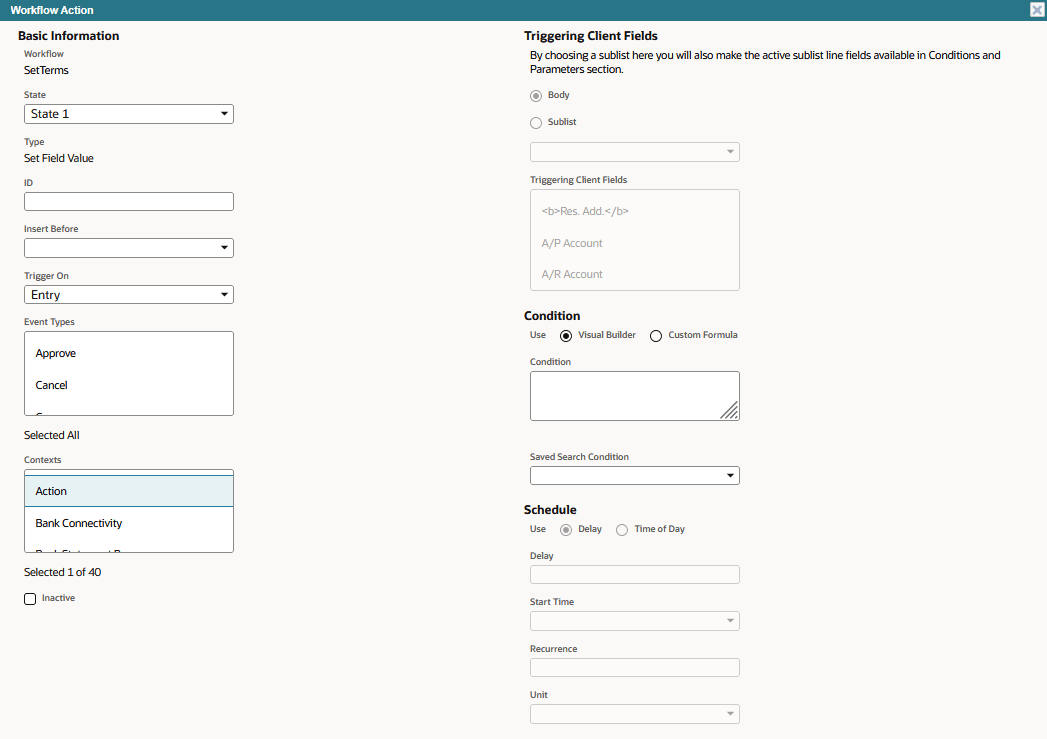For a list of all actions available in SuiteFlow, see Workflow Actions Overview.