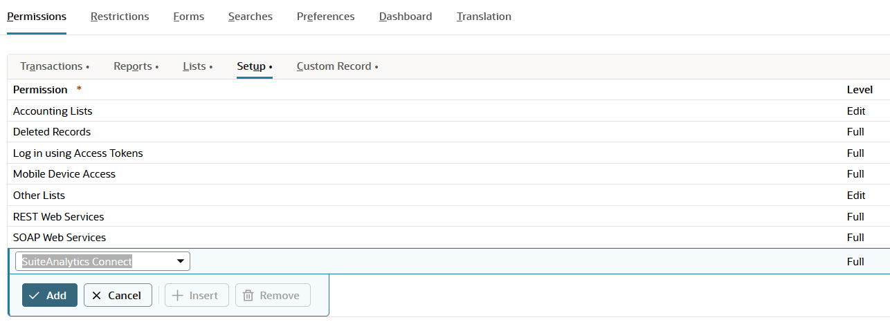 Important:You can't add the SuiteAnalytics Connect permission to a role that has SAML Single Sign-on permission.