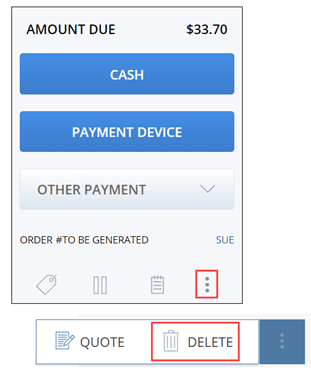 Also called “suspending” an order, saving is useful if your customer is not ready to complete a transaction. Saved orders can be resumed later. To save an order, tap the Pause icon found on the lower right.