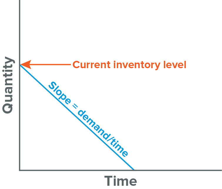 If you know your vendor's lead time and your demand (slope), the reorder point is based on (demand ÷ time × lead time). If you checked the Autocalculate box, lead time is calculated based on your last three purchases, but you can override it if needed.
