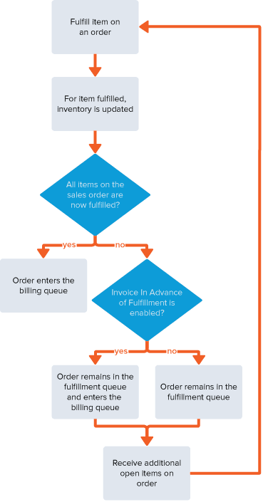 Your fulfillment workflow will be different depending on whether the Advanced Shipping feature or the Fulfillment Request is enabled. Without Advanced Shipping, you fulfill and bill sales orders simultaneously. With Advanced Shipping enabled, you first fulfill sales orders, then bill them.