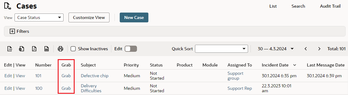 Click Grab next to the case you want to assign to yourself.