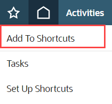 For instructions on how to add the Shortcuts portlet to a page, see Adding a Portlet to a Dashboard.