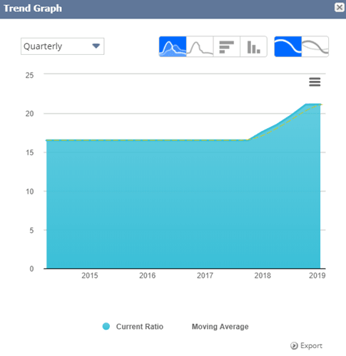 Each popup trend graph includes buttons you can click to print the trend graph chart, or to download it to a PNG, JPG, PDF, or SVG file, and Export you can click to export chart data to a CSV file.