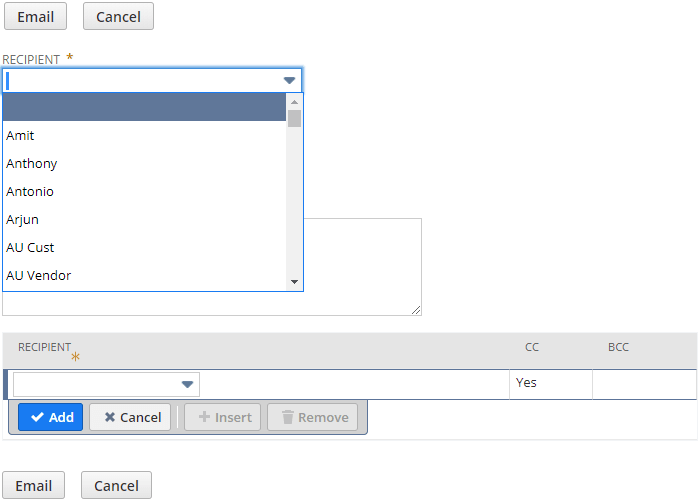 Click the dropdown arrow to view a list of possible recipients.