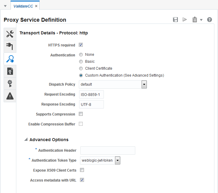 Much of the configuration for proxy services involves the transport protocol. Transports are the communication layer between the external systems and the proxy services, acting as an entry point into Service Bus. The available transport protocols for a proxy service vary depending on the service type you are creating. Each transport protocol has its own configuration requirements. For more information about transport protocols and their configuration requirements, see Working with JCA Adapters, Transports, and Bindings and click the link to the specific protocol you are interested in.